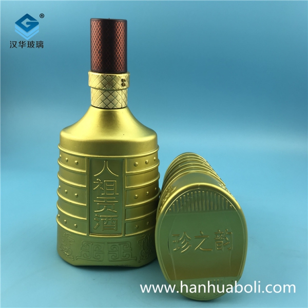 500ml喷涂金色玻璃酒瓶